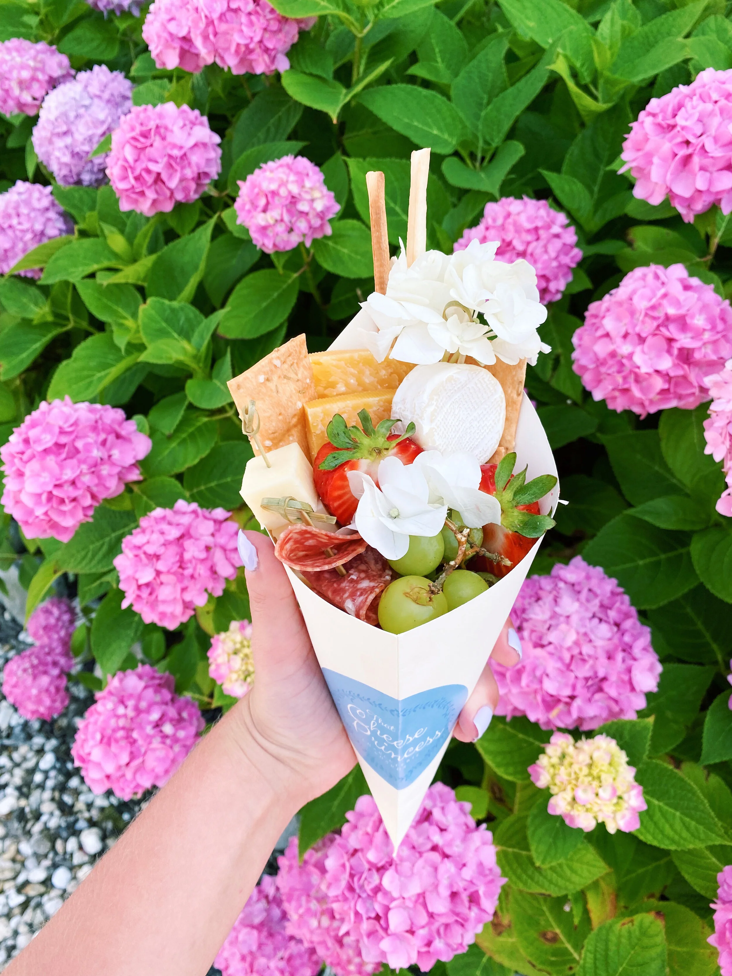 These are individual cones which contain 3 cheeses, meat, fruit, crackers, and garnish. Charcuterie Cones must be ordered with a minimum of 10. These cones are perfect for any gathering!